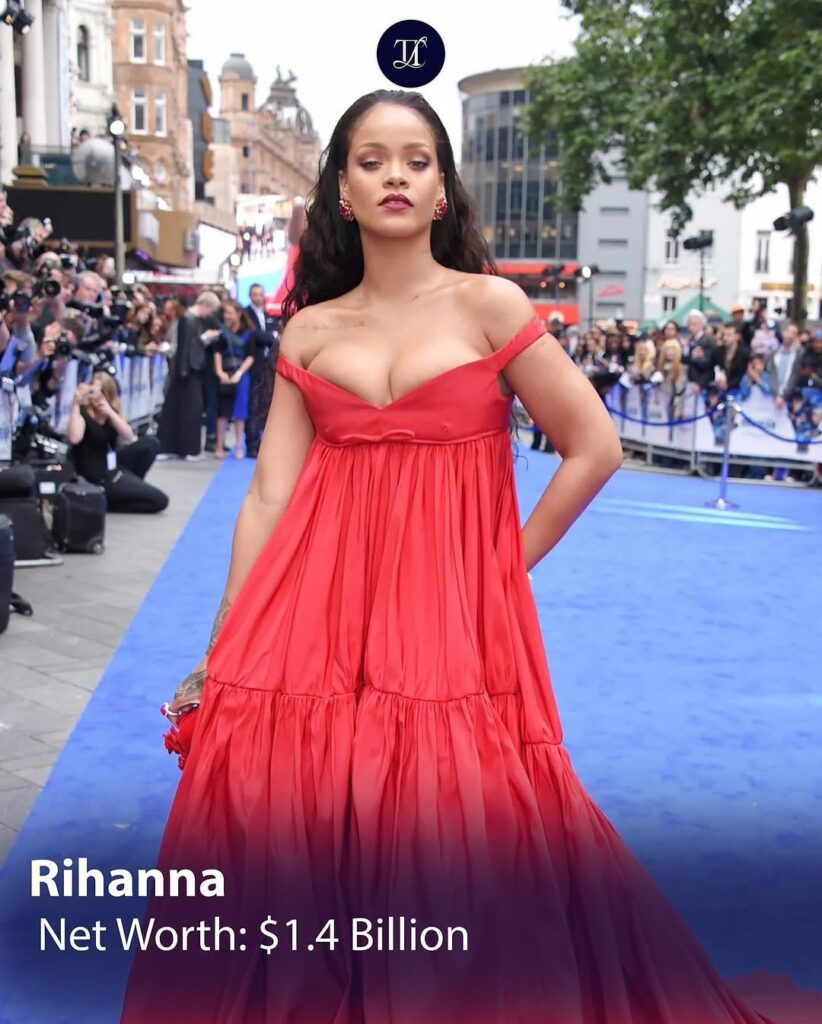 Rihanna Net Worth $1.4 Billion Barbadian singer, businesswoman, and actress. She has had a significant cultural impact through both her music and fashion ventures. Rihanna is one of the wealthiest and best-selling musicians of all time, with estimated sales of 250 million records. Her accolades include nine Grammy Awards, 12 Billboard Music Awards, and 13 American Music Awards, with nominations for an Academy Award and a Golden Globe.