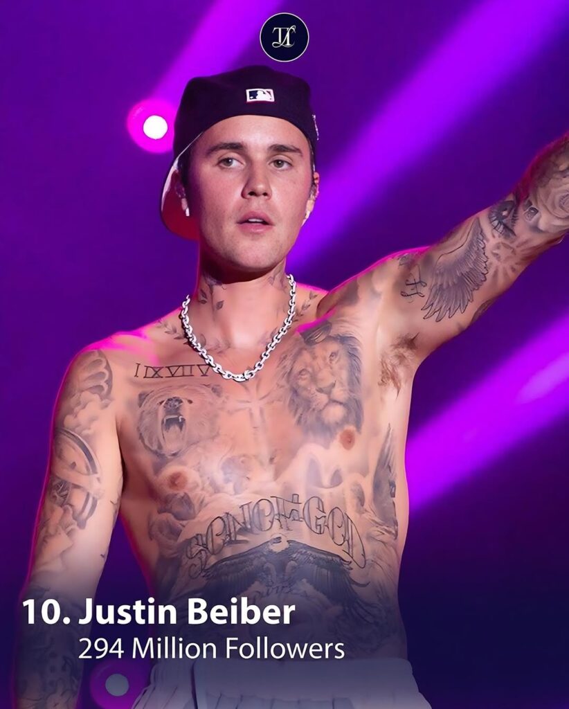 10. Justin Bieber – 294M